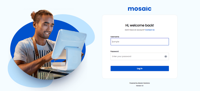 - Go to https://backoffice-console.mosaic-pos.com/#/auth/login