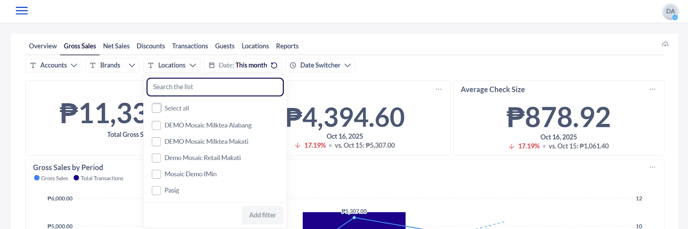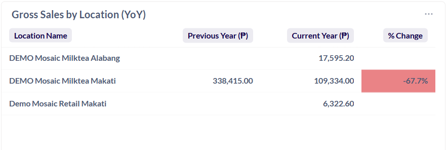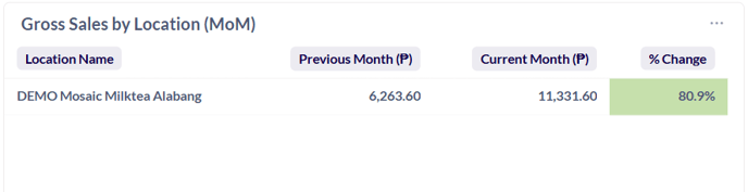 - Gross Sales by Location (MoM) - compares total sales for each location from one month to the previous month. It helps identify which locations are growing, declining, or performing consistently over time.