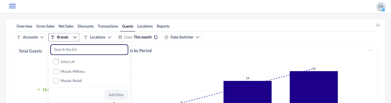 5. The Brand Filter lets you select the Brand Name that is associated with the registered account name.