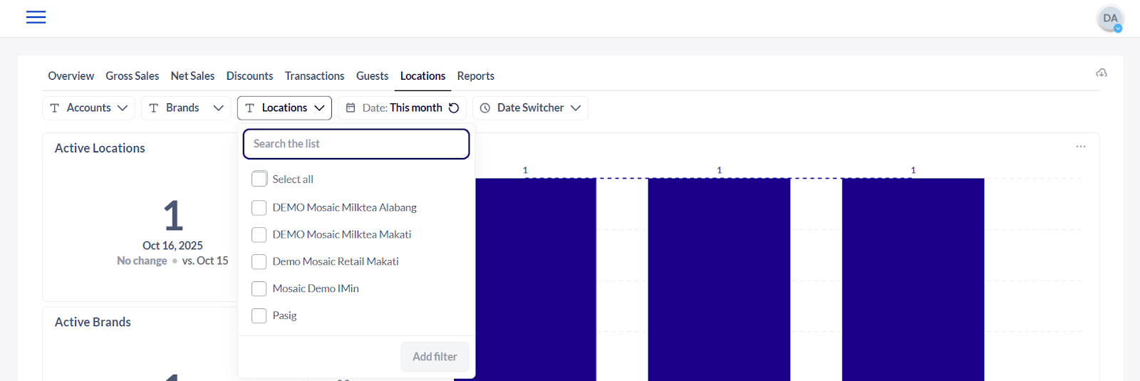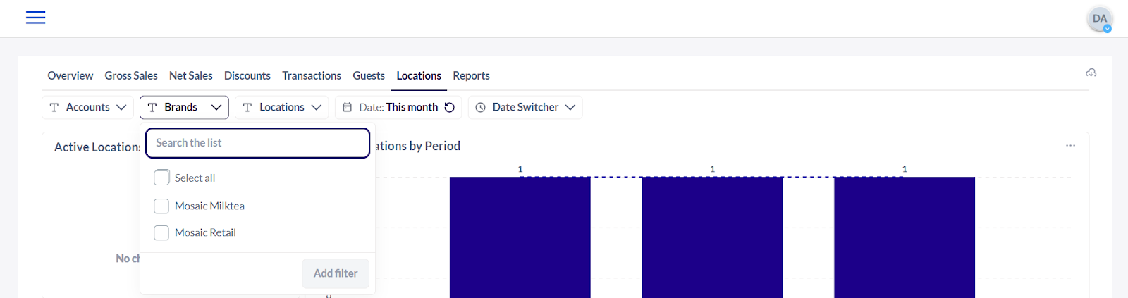 5. The Brand Filter lets you select the Brand Name that is associated with the registered account name.
