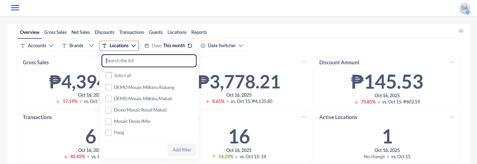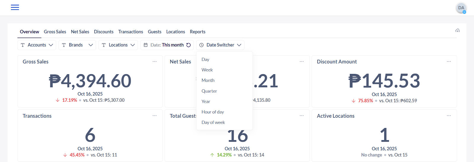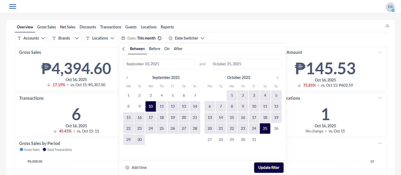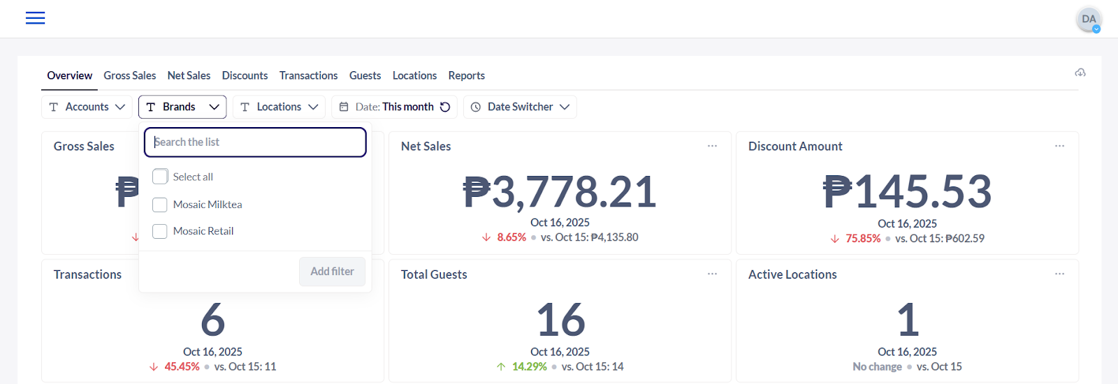 - The Brand Filter lets you select the Brand Name that is associated with the registered account name.