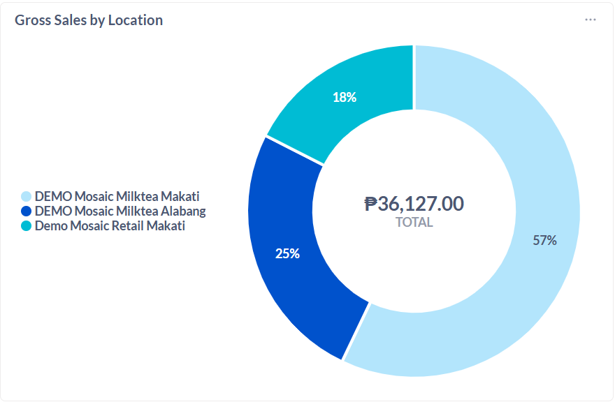 - Gross Sales by Location - the total, unadjusted sales revenue generated by one specific physical store or business location.