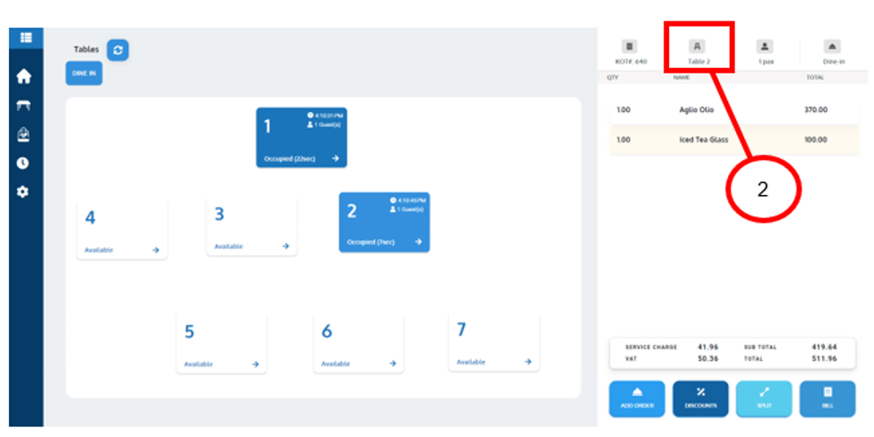 Note: If you click on Table 1, there are no buttons available here. Settlement and other options can now be done on Table 2.