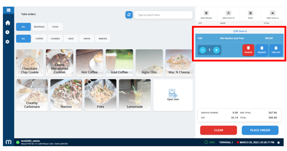 7. The items will be listed on the order list (right side) upon clicking on the item.
