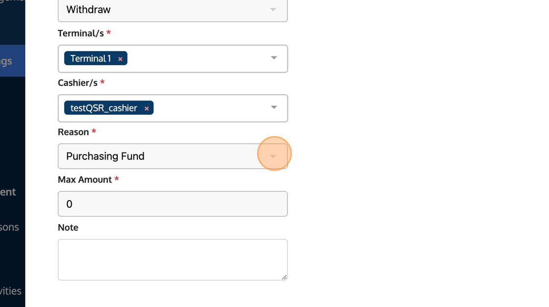 Withdraw Fund - performed when there's a requirement to withdraw cash from the POS for valid business reasons and activities.