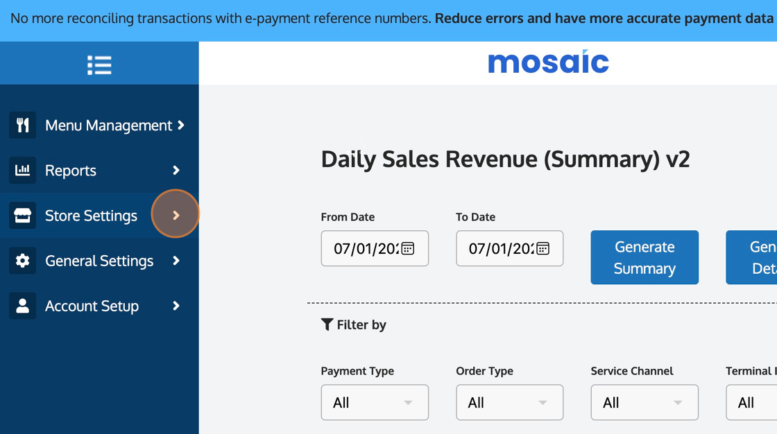 Pumunta at mag login sa Mosaic POS Back Office https://admin.mosaic-pos.com/
