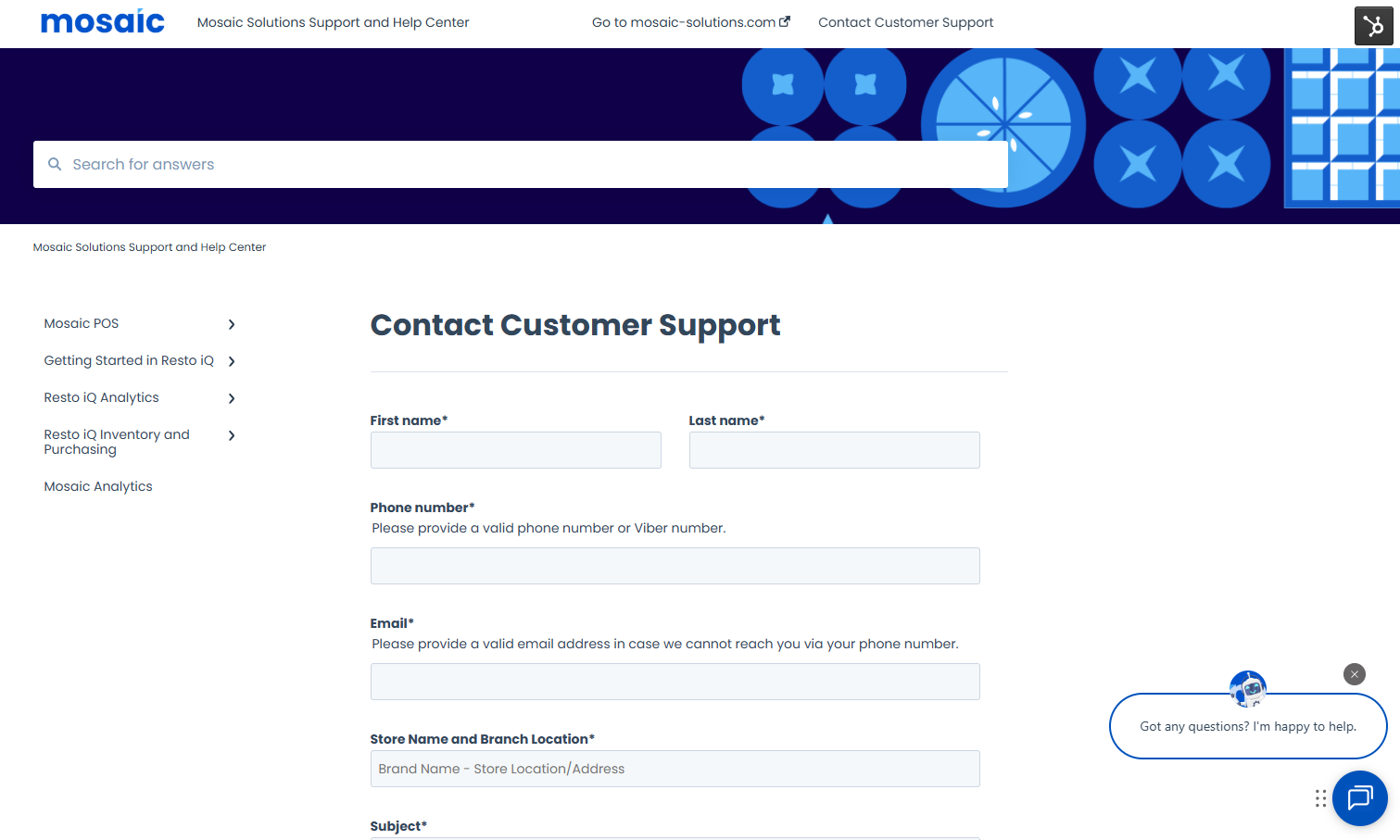 Note: The Mosaic Chatbot feature is also available should you have any questions and will automatically route your inquiry to our customer support team.