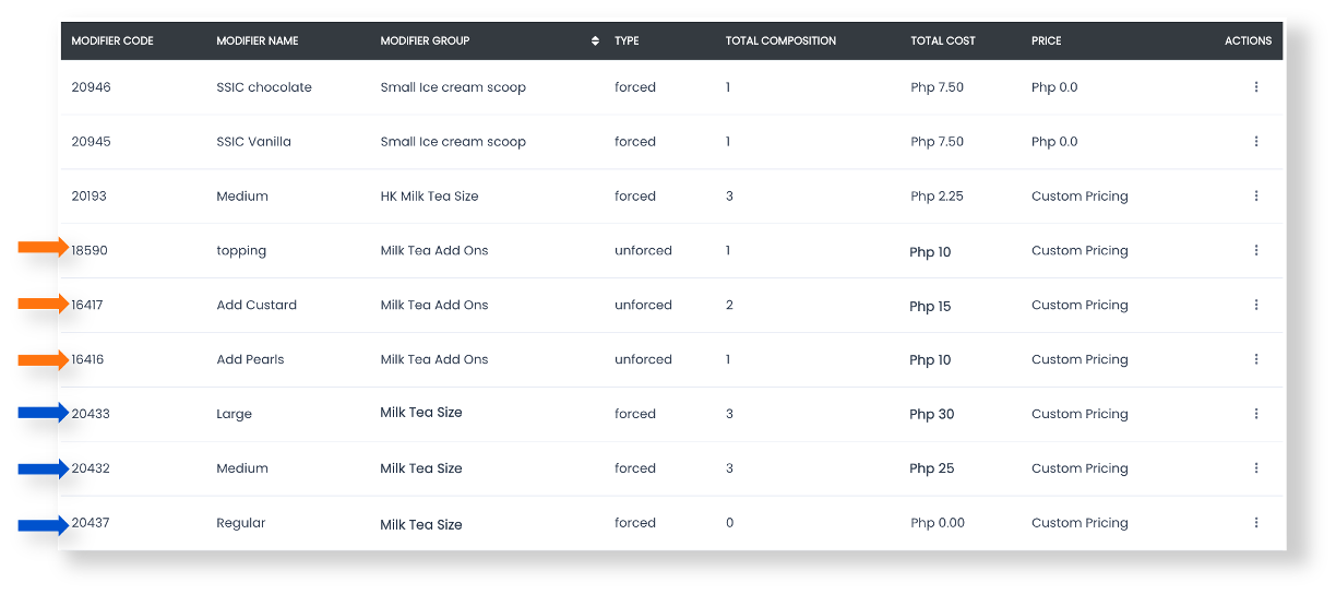 Total Cost on the other hand is the additional amount added to the base price of the item. In this example, we can see the additional costs to be a few pesos per modifier.