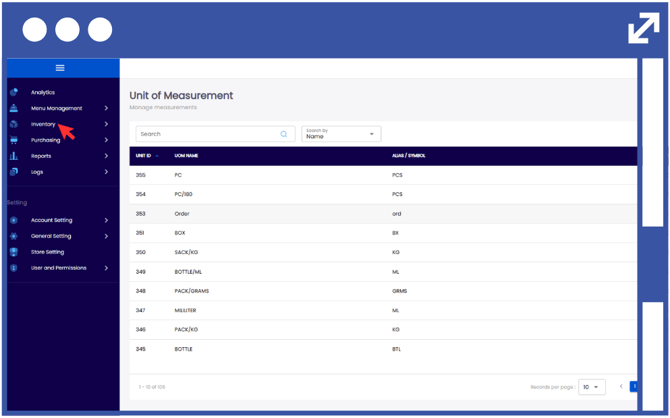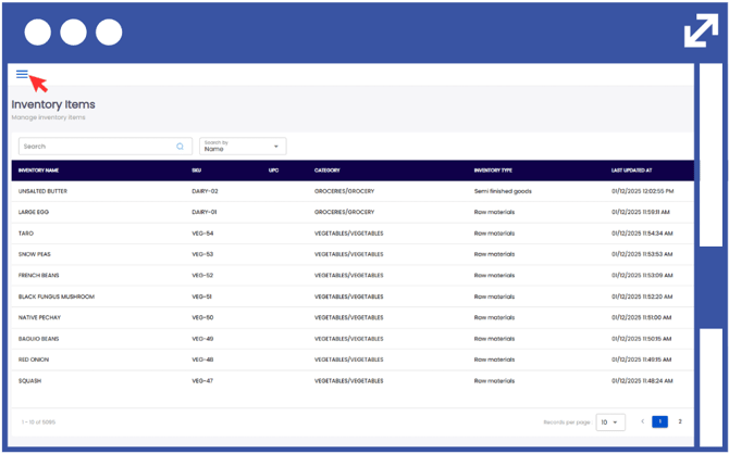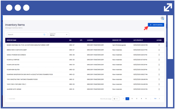 24. In order to modify the inventory items, click on the action button using the three-dots.