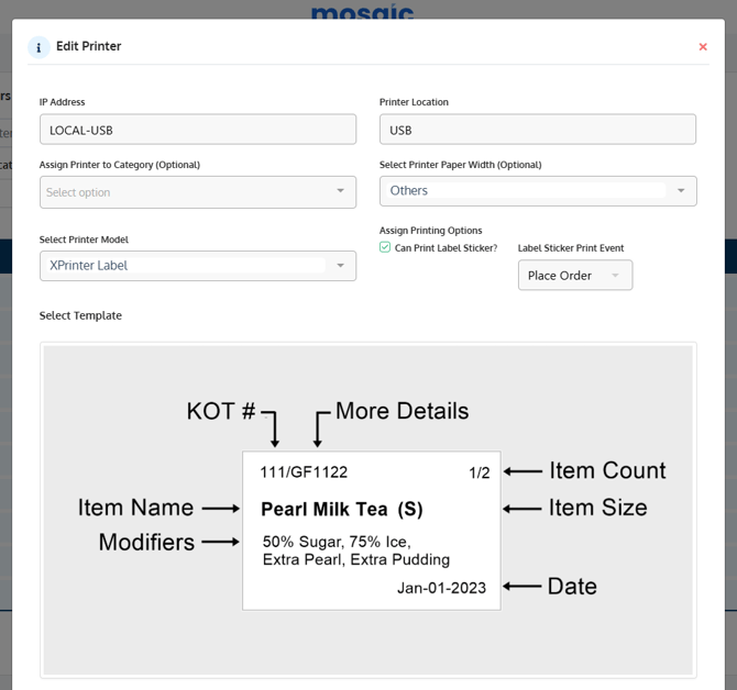 Note: Printers can be assigned to individual/multiple categories depending on the hardware setup (use of multiple printers).